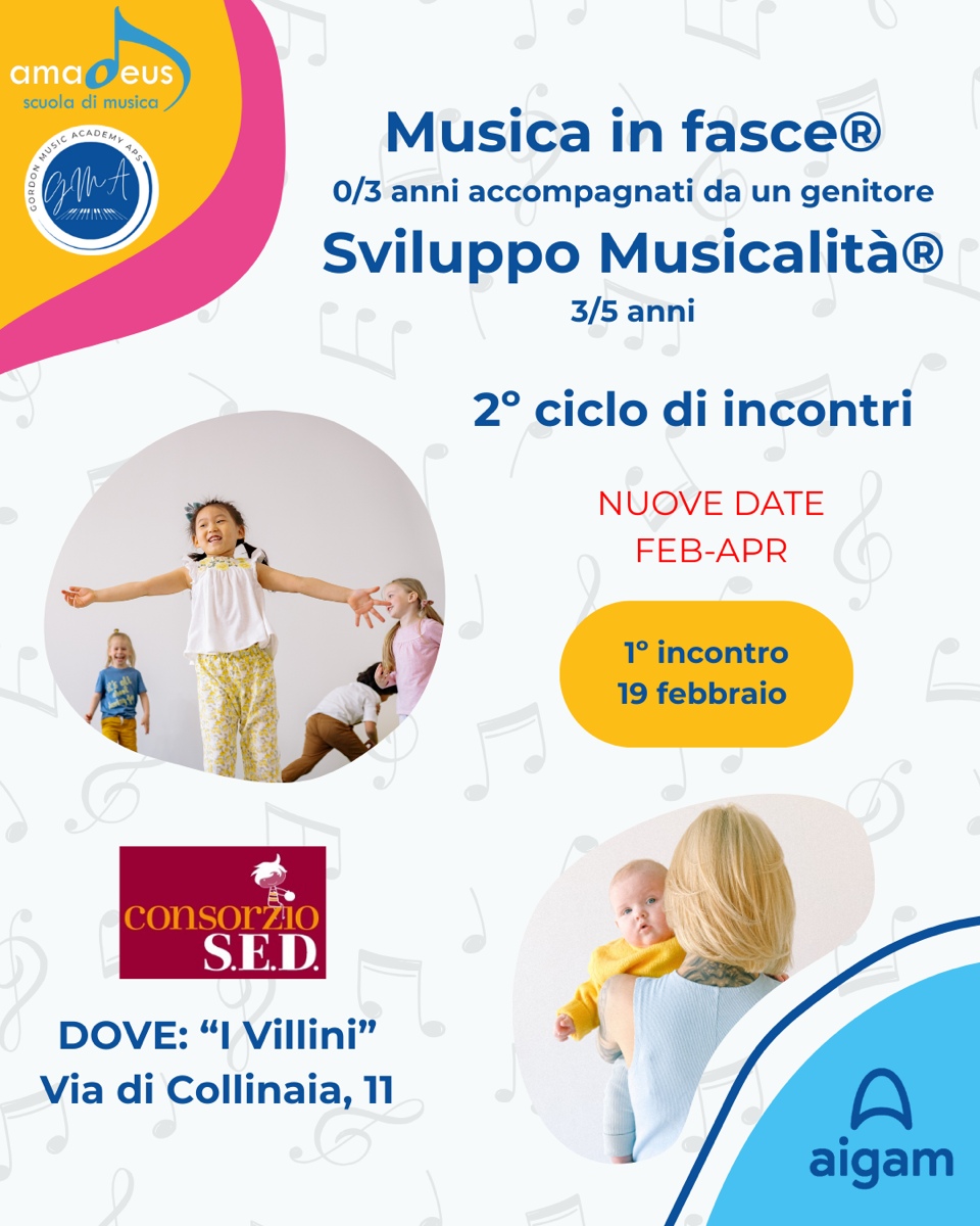 Si avvale della collaborazione di insegnanti AIGAM e della scuola AIGAM Amadeus attiva nel campo dell’ educazione musicale della prima infanzia da oltre 25 anni.
